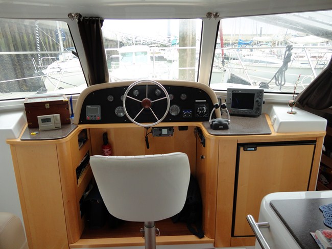 Highland 35 Pilot features a superb flybridge with seating for 6 and a vast sun-bathing area with thick mattresses (7 ft x 4 ½ ft / 2.20 m x 1.40 m) and an ergonomic helm station. Whether underway or at anchor, this comfortable and convivial place affords apanoramic view which will soon make it the favorite place for all onboard.