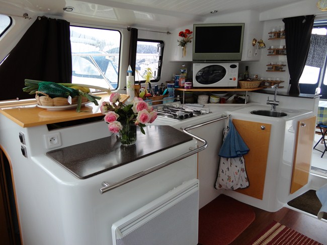 There is a sheltered cockpit of more than 96 ft² /9 m² opening directly onto the saloon. The cockpit is the ideal area for eating in the open air or for preparing nautical activities. Sheltered from the sun and the wind you can lunch comfortably with easy direct access to the galley via the serving hatch.
