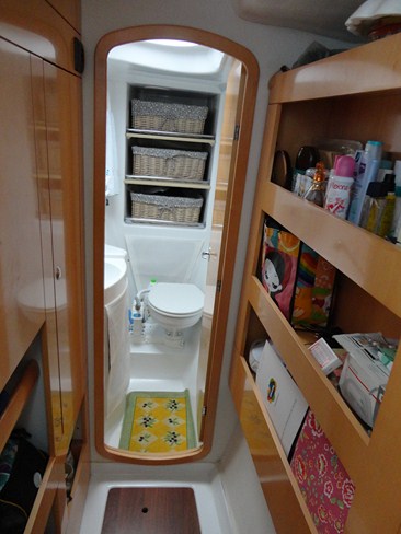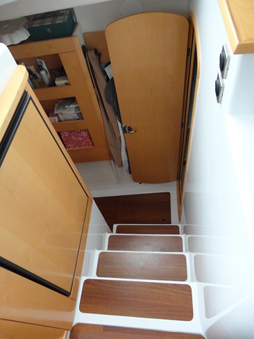 The Duo version offers in each of the two hulls a fine owner cabin with a large private bathroom and separate shower as well as a study and fine shelving space.