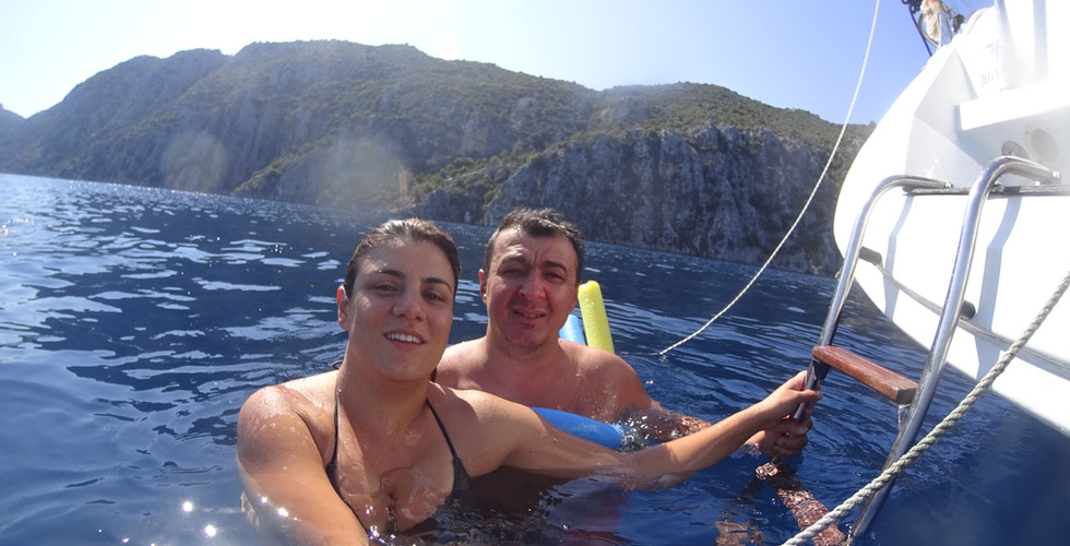 Misafirlerimiz Ankara'dan. İki aile. Toplam beş kişi. Müteahit abimiz Cengiz ve sevgili eşi Mehtap ile namıdeğer Cx (Ozan Evren) ile eşi Mukaddes ve çocukları Ece. Tabi biz de az değiliz. Eşim ve Pamir ile birlikte oluverdik sekiz kişi. Korkmayın, kamaralarımız yeterli. Cengiz ve Mehtap güverteyi tercih edince, boş kamara bile kaldı.