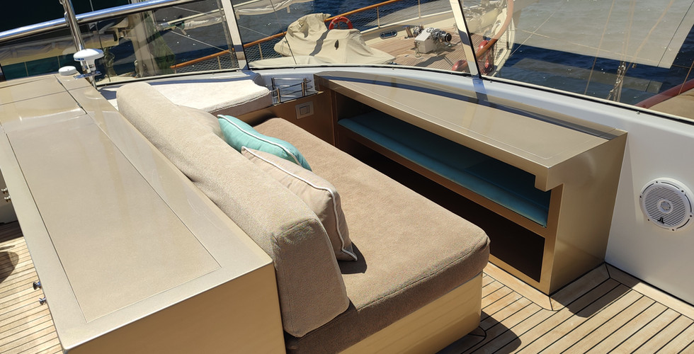 Sun & Flybridge deck: Burmese 14 mm teak deck (2022)